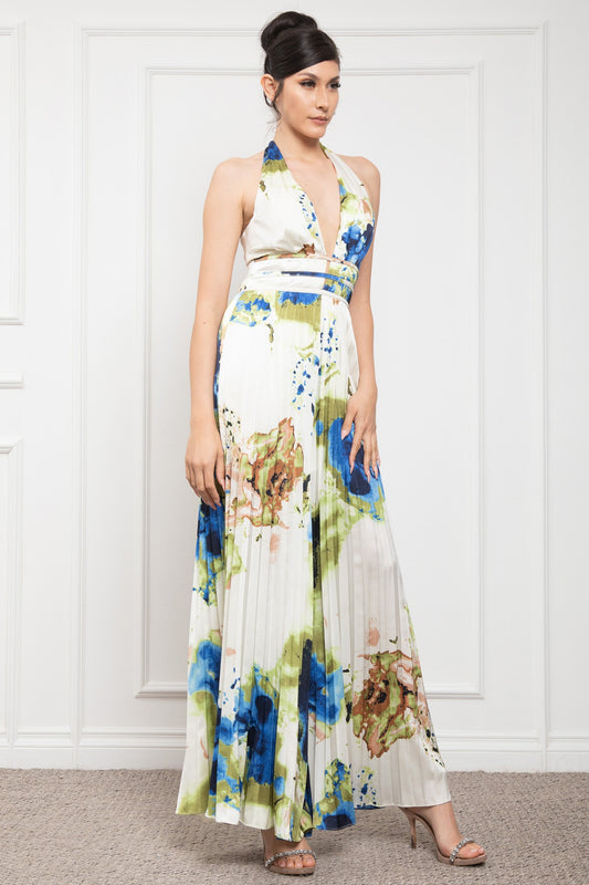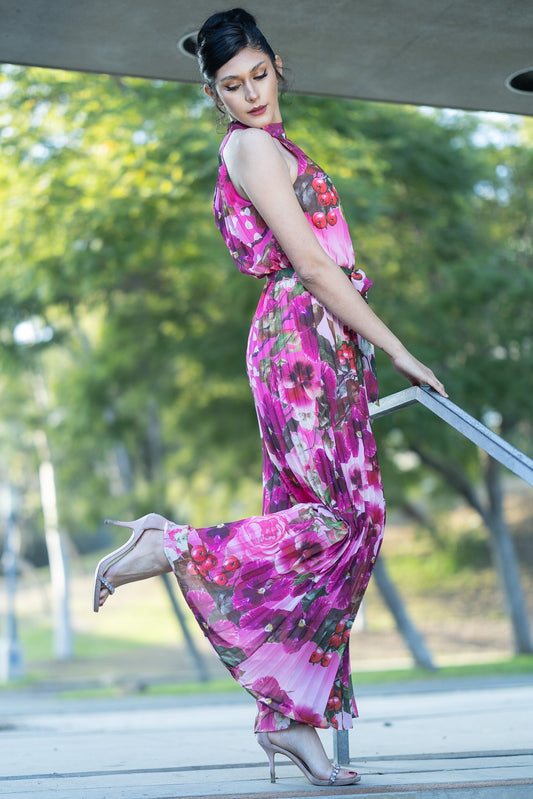 Halter Neck Sleeveless Pleats Bottom Jumpsuit